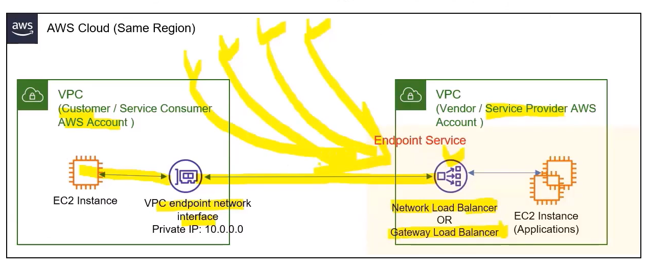 - vendor (service provider) 는 VPC에 앱을 구성하고 VPC Endpoint 서비스를 구성