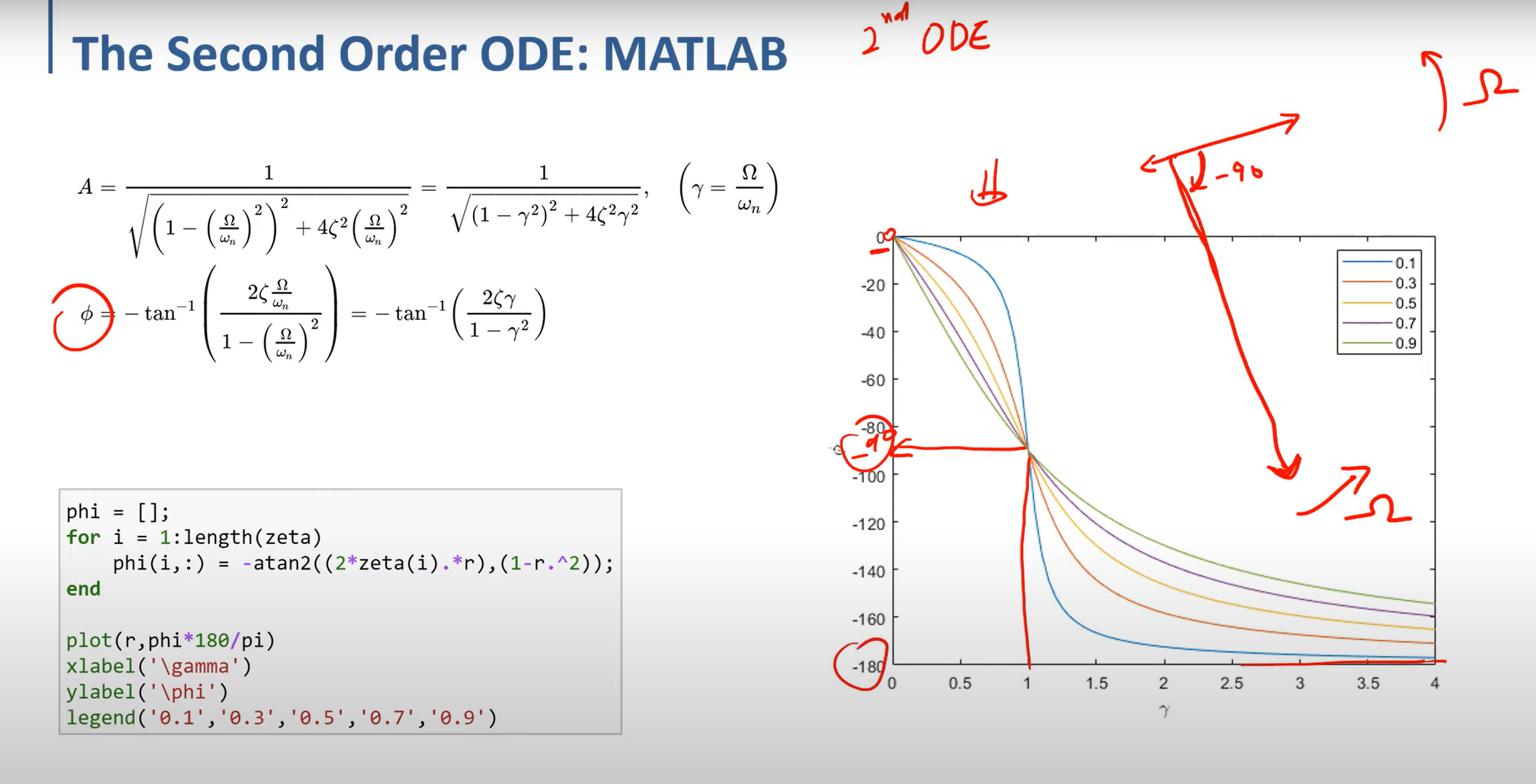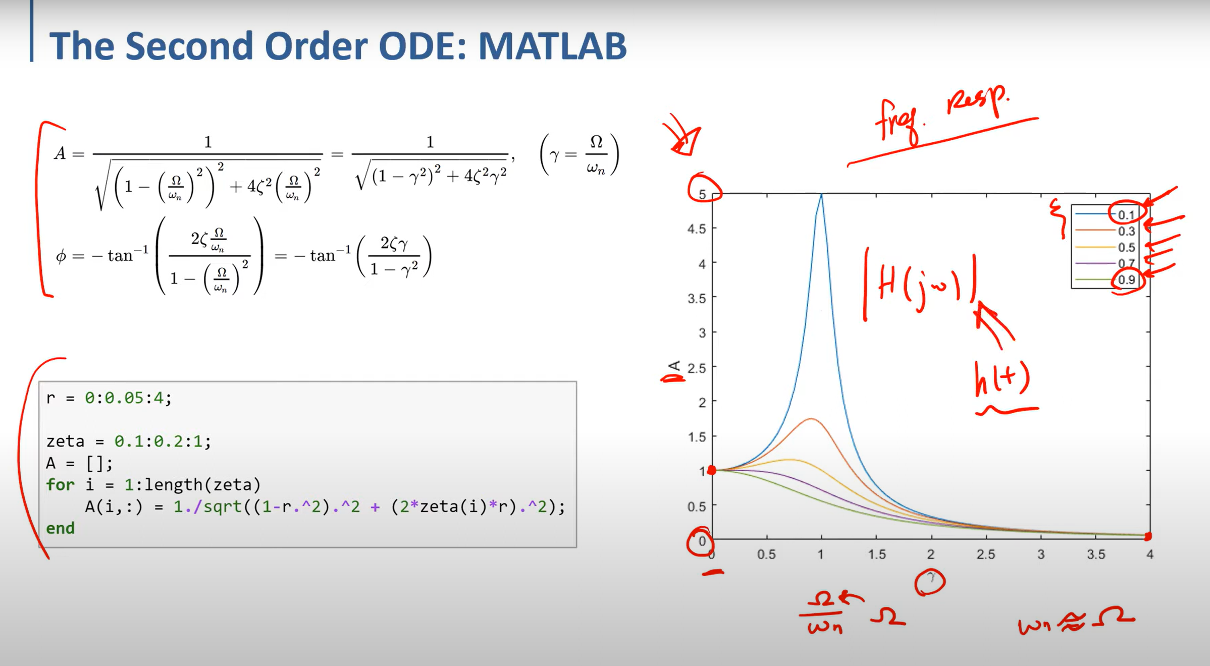 그래프 색깔의 zeta는 damping 지수 (zeta) 이다. 이것이 커질수록 output response인 A(amplitude)가 감소하는 경향을 확인 할 수 있다.