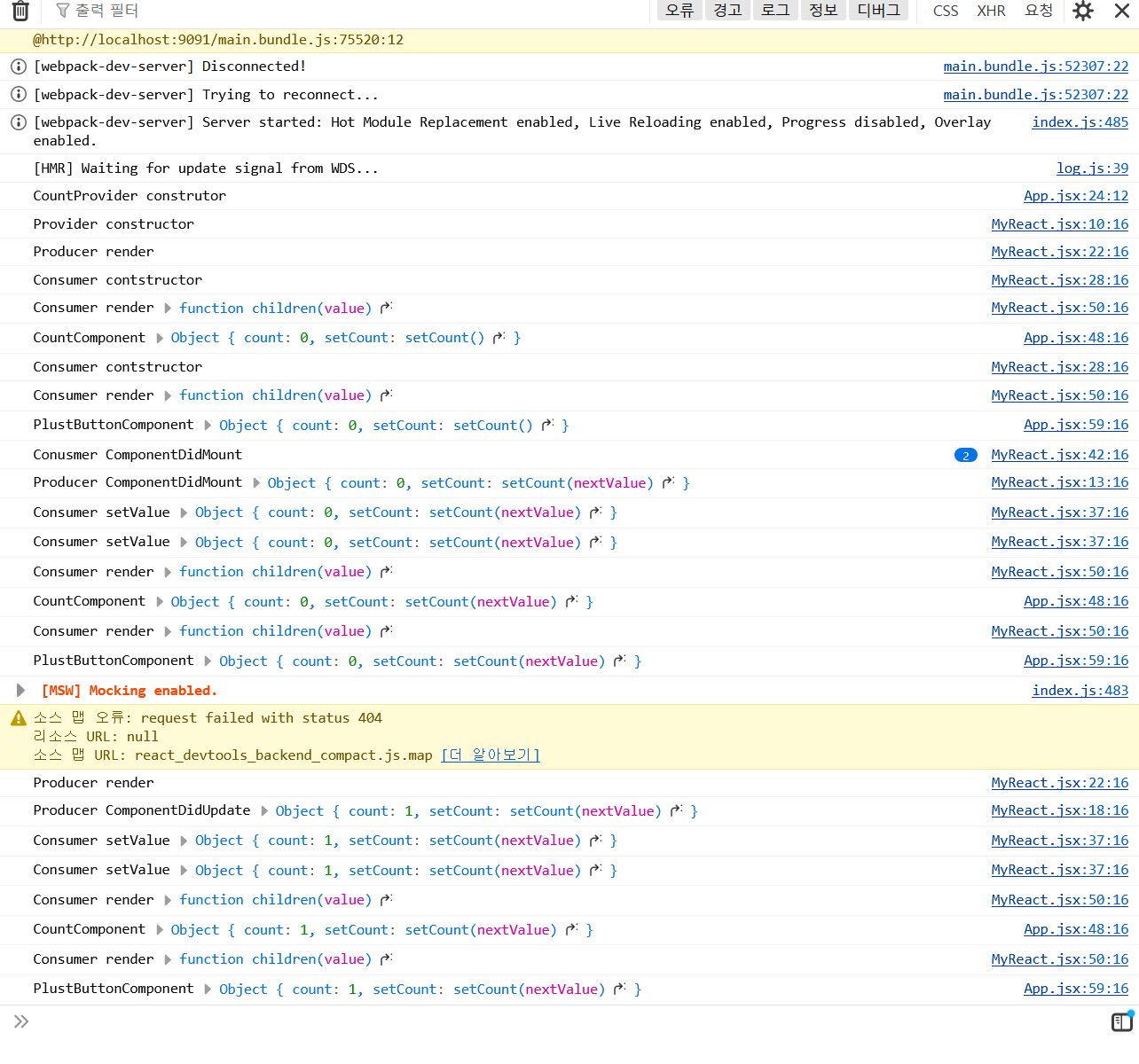 안녕하세요 선생님 react context를 이해하려고 시도하는 중입니다.const countContext = MyReact.createContext({ count: 0, setCount: () => {},});class CountProvider extends R...