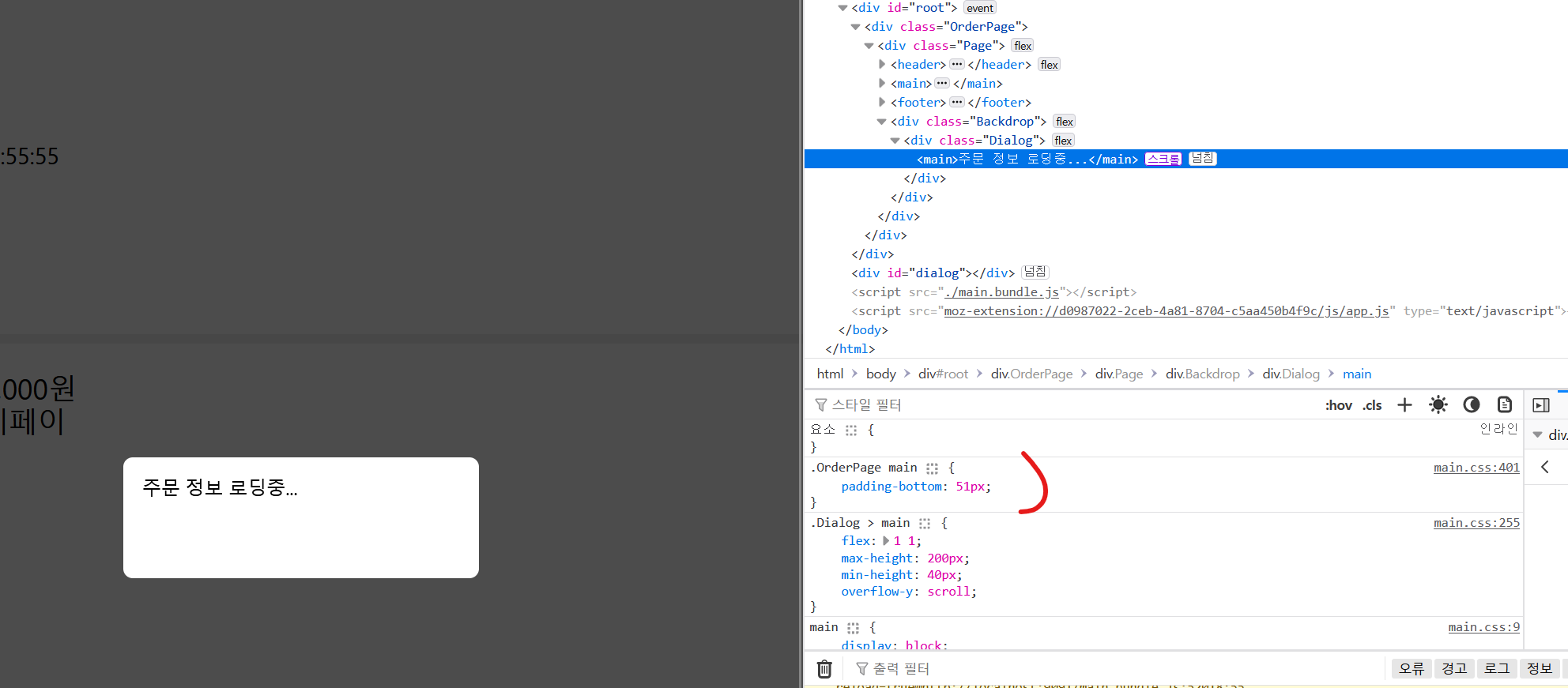 현재 padding-bottom 값이 따로 정의 되어 있지 않기 때문에 상위 element css로부터 영향을 받게 된다.