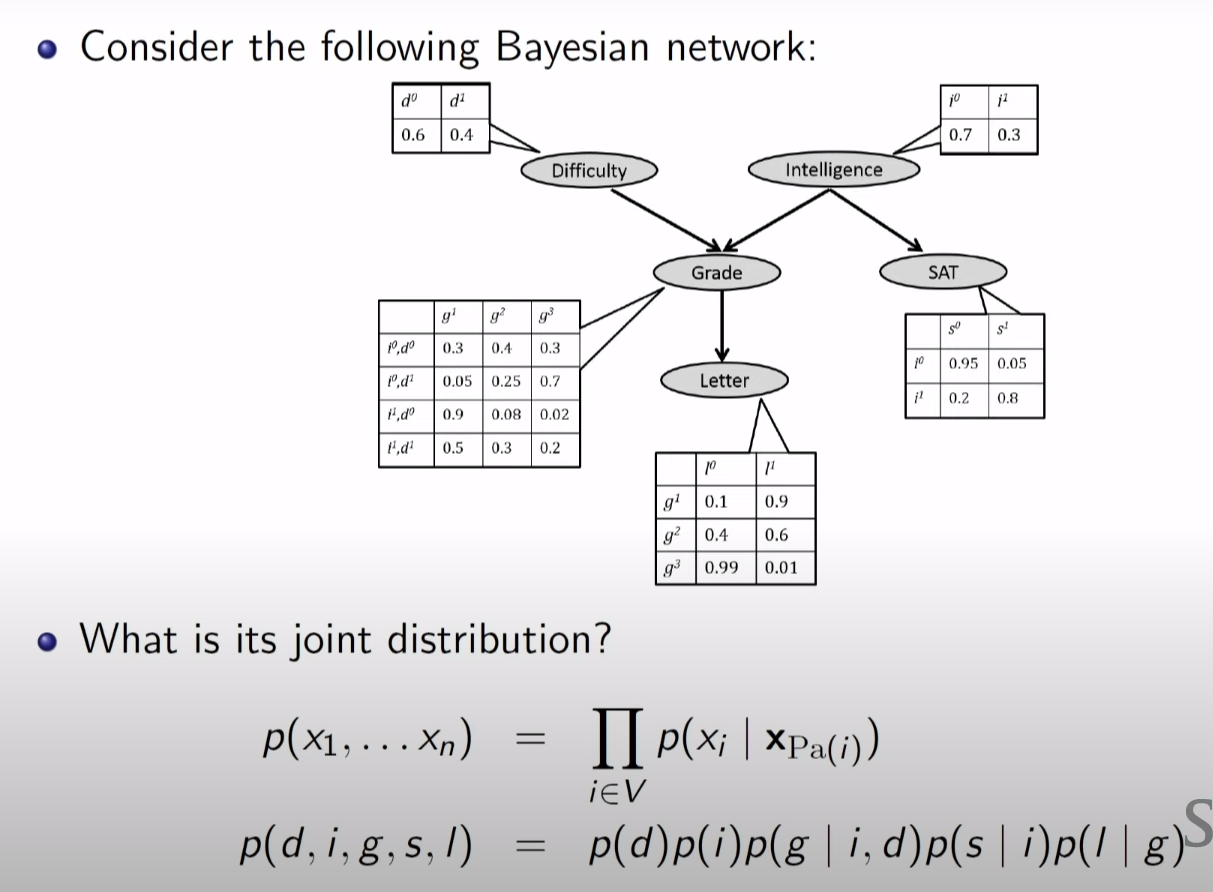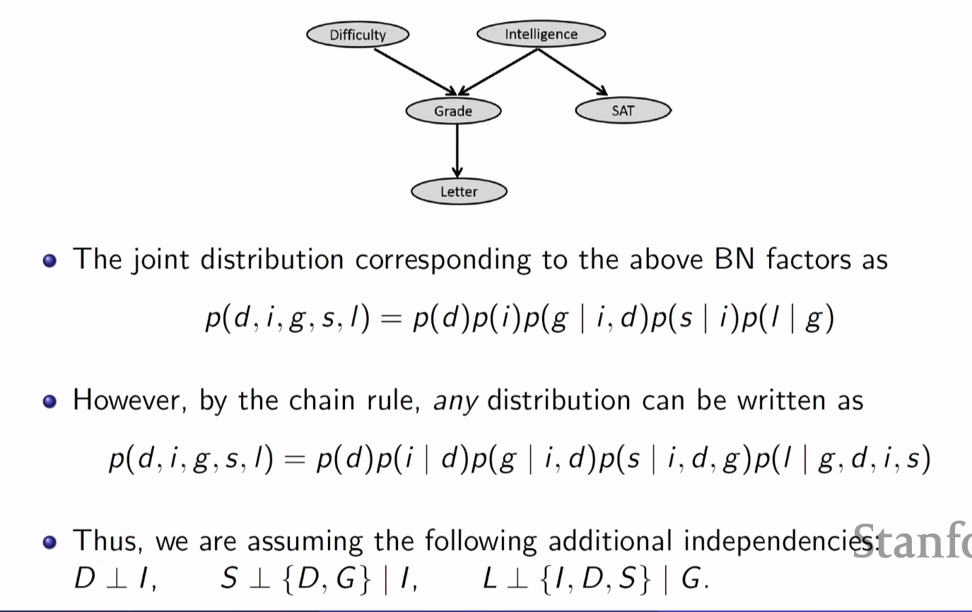 joint distribution 을 전체를 표현할 때 letter 같은 경우에는 Grade의 probabiltiy만 알면되고 그 밑에것 까지 계속해서 알 필요는 없어서 parameter 수가 현저히 줄어들게 된다.