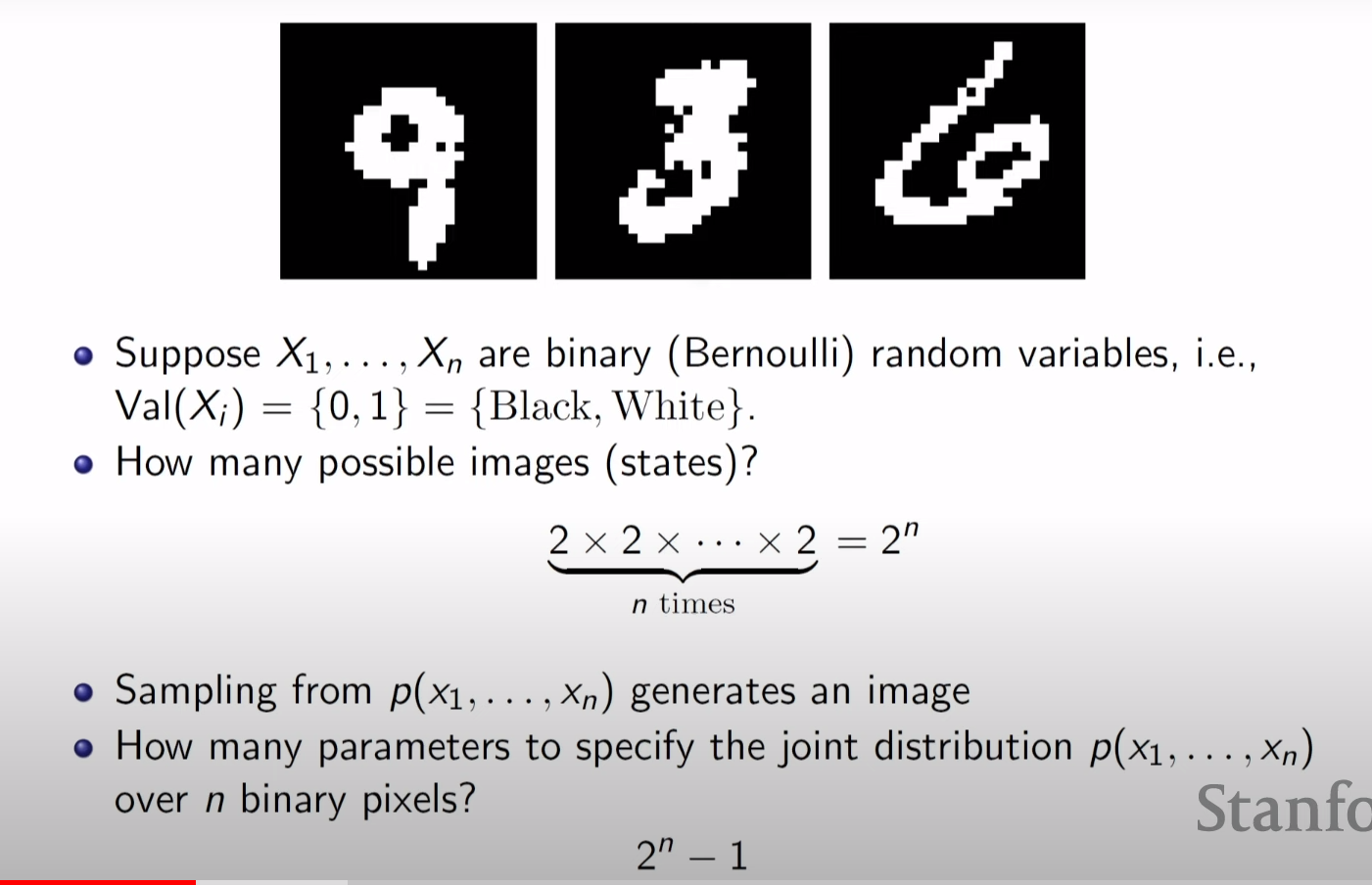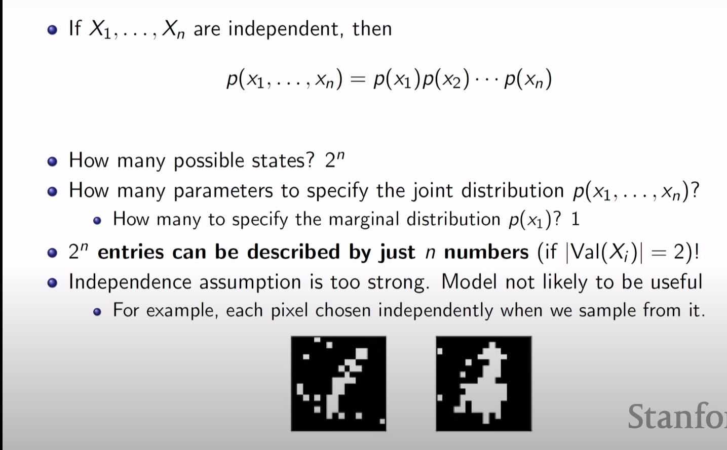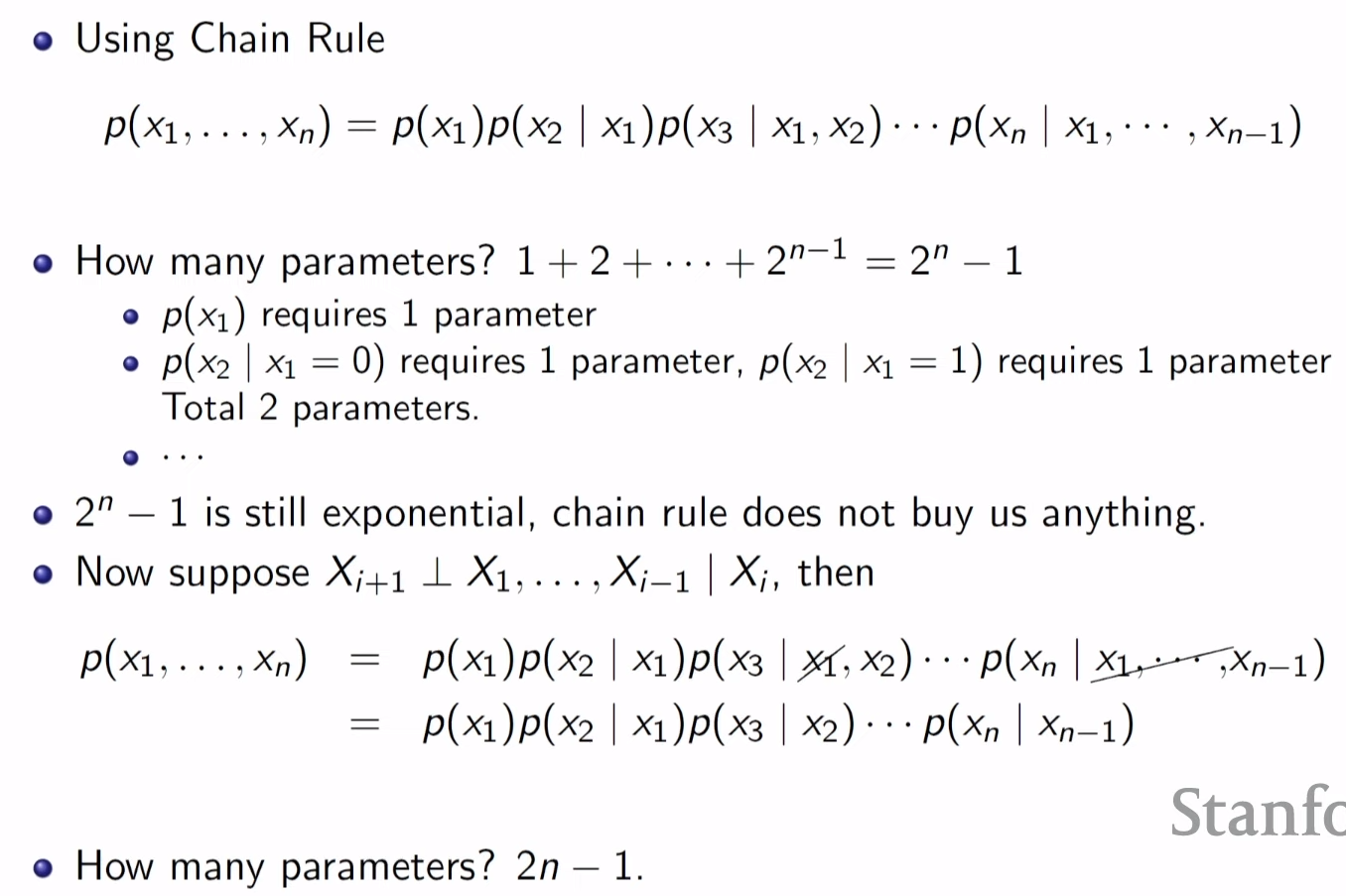represent 하는 state는 2^n 개이지만 joint pdf 를 나타내기위한 필요한 parameter 개수는 2^n-1 이다.