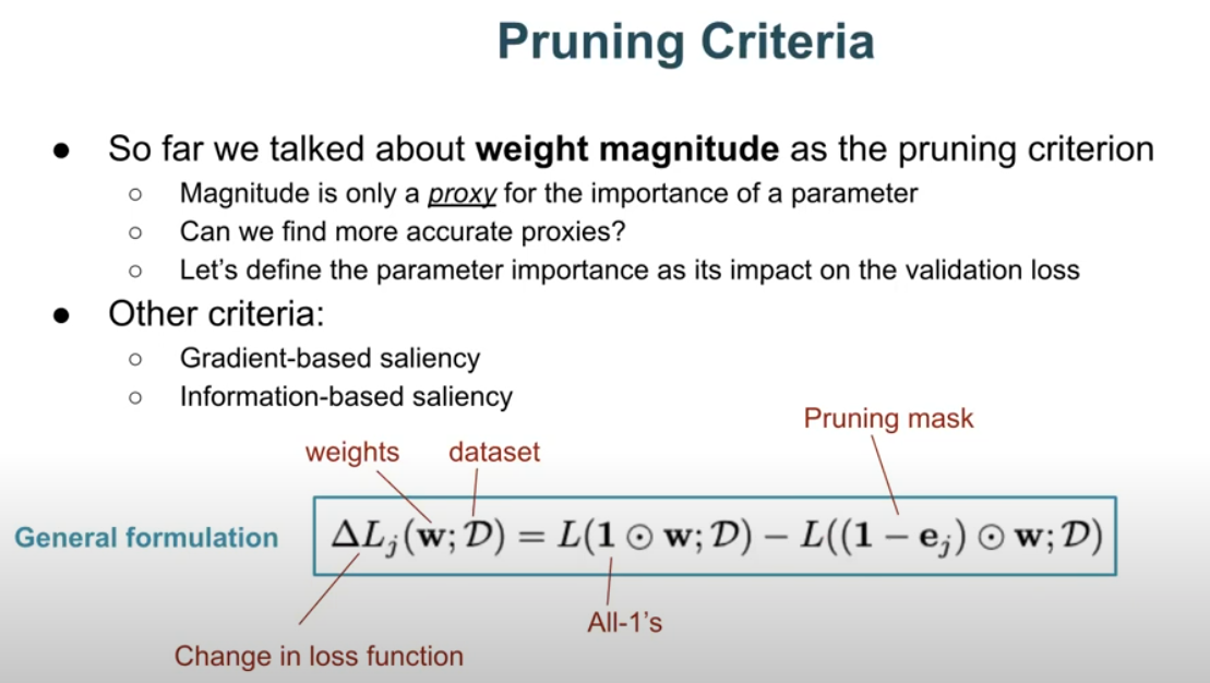 unlike randomly removing weight, we now have some criteria , General formulation is to check which weight(neuron) has most least changes in loss function.