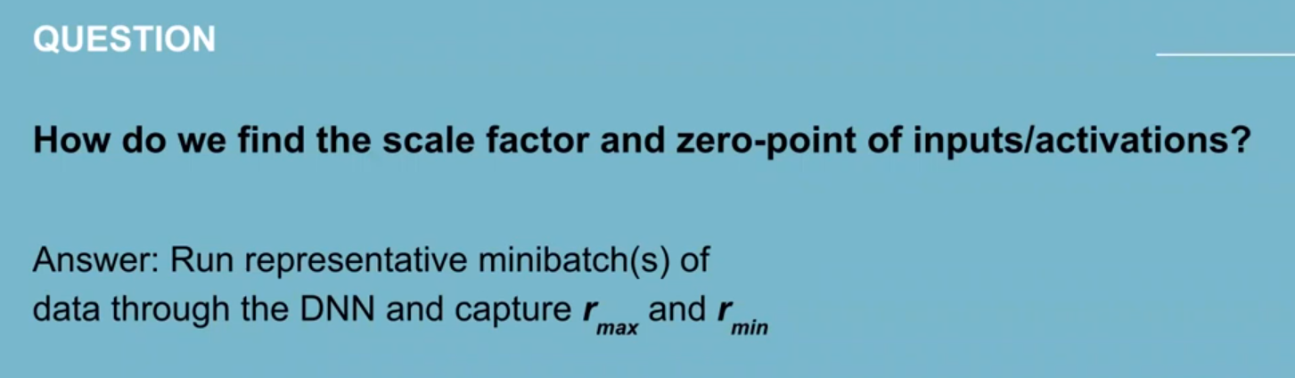 weights are forzen and don't change, can precompute scale and zero point ,but not with inputs/activation