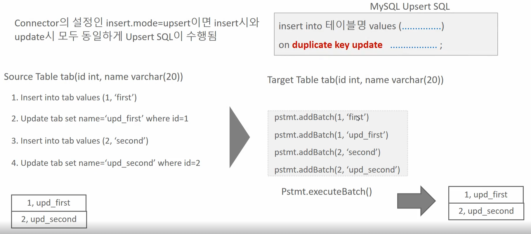 실제 source db에서는 여러개의 쿼리로 bin log가 만들어졌어도 Debezium cdc에서는 preparedStatement로 batch처리 해서 한번에 처리하게 된다.