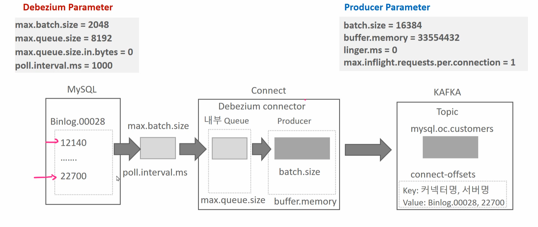 Debezium Source Connector 배치 메시지 관련 파라미터