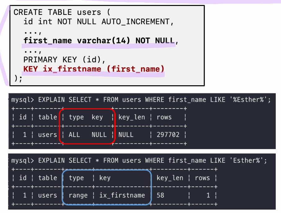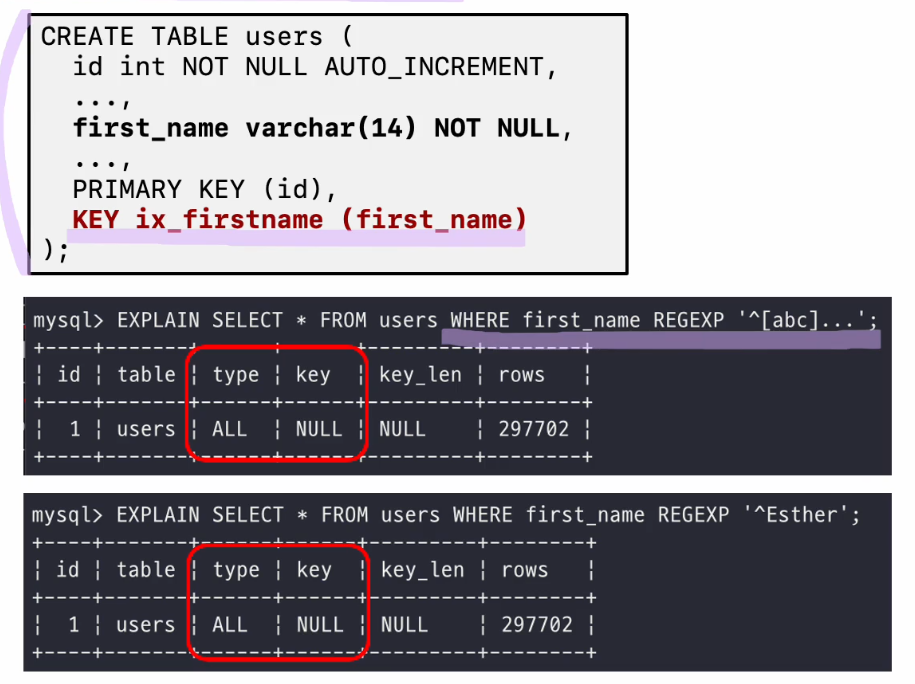 4. Like 연산에서 시작 문자열로 와일드 카드를 사용하는 경우