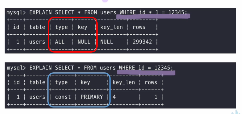 형변환의 예시의 경우 mysql에서는 묵시적으로 문자열 타입 컬럼에 대해 숫자 타입으로 형변환을 수행한다.