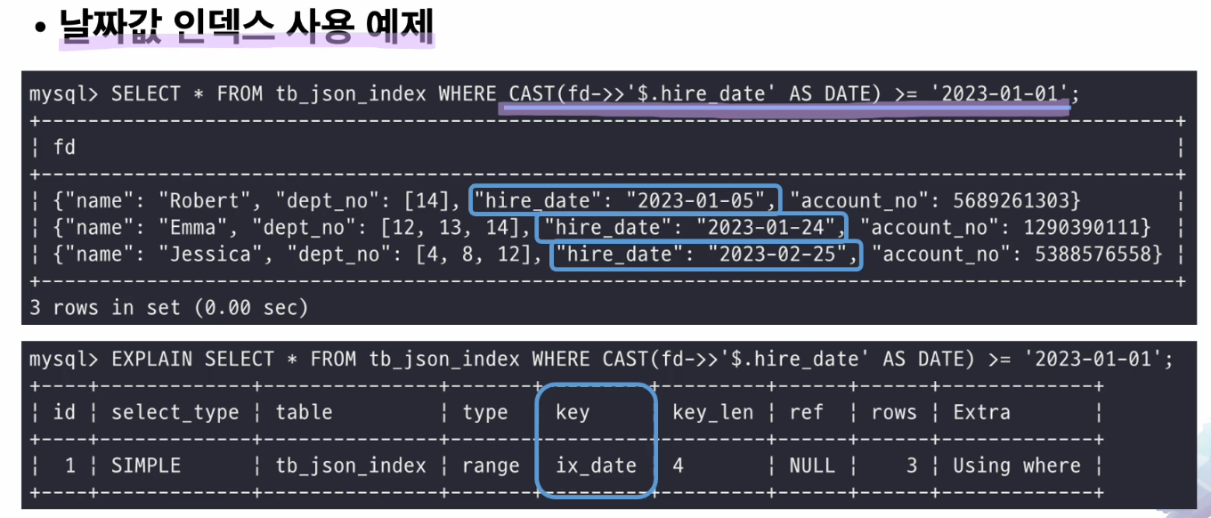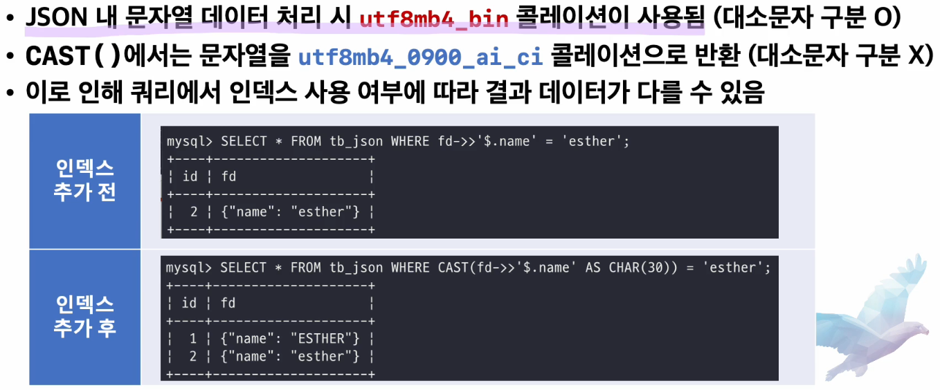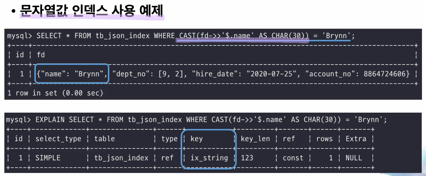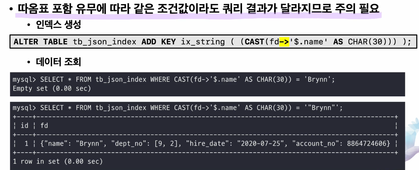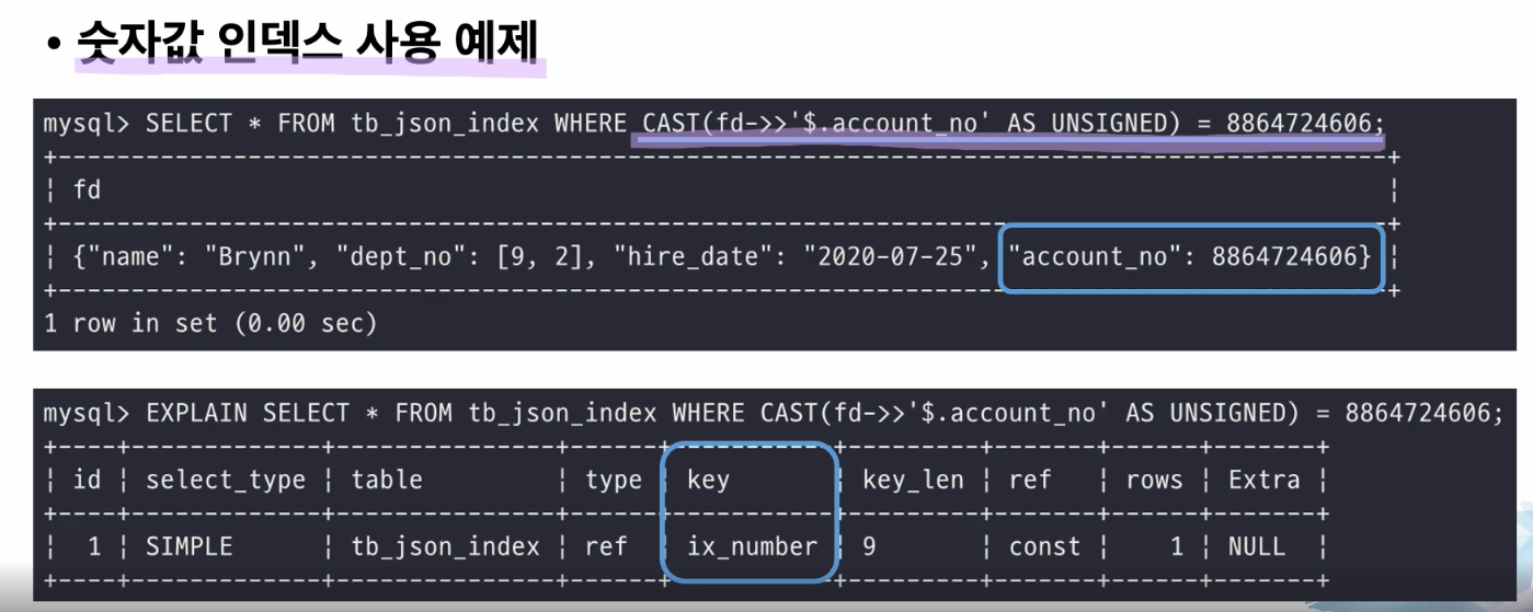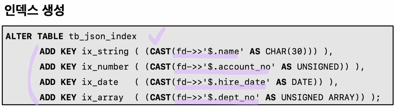 CAST를 사용하지 않으면 json data를 인덱싱할 수 없다.