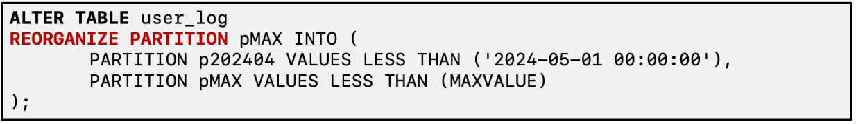 - 마지막 파티션 이후 범위의 신규 파티션을 추가