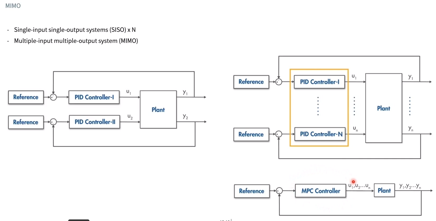 기존의 PID Controller로 multiple input output system을 구축 하려면 서로의 input 과 output이 영향을 받는 경우가 있기때문에 구현 하기 힘들다. MPC controller는 그것들을 간소화 시켜서 해결해준다.