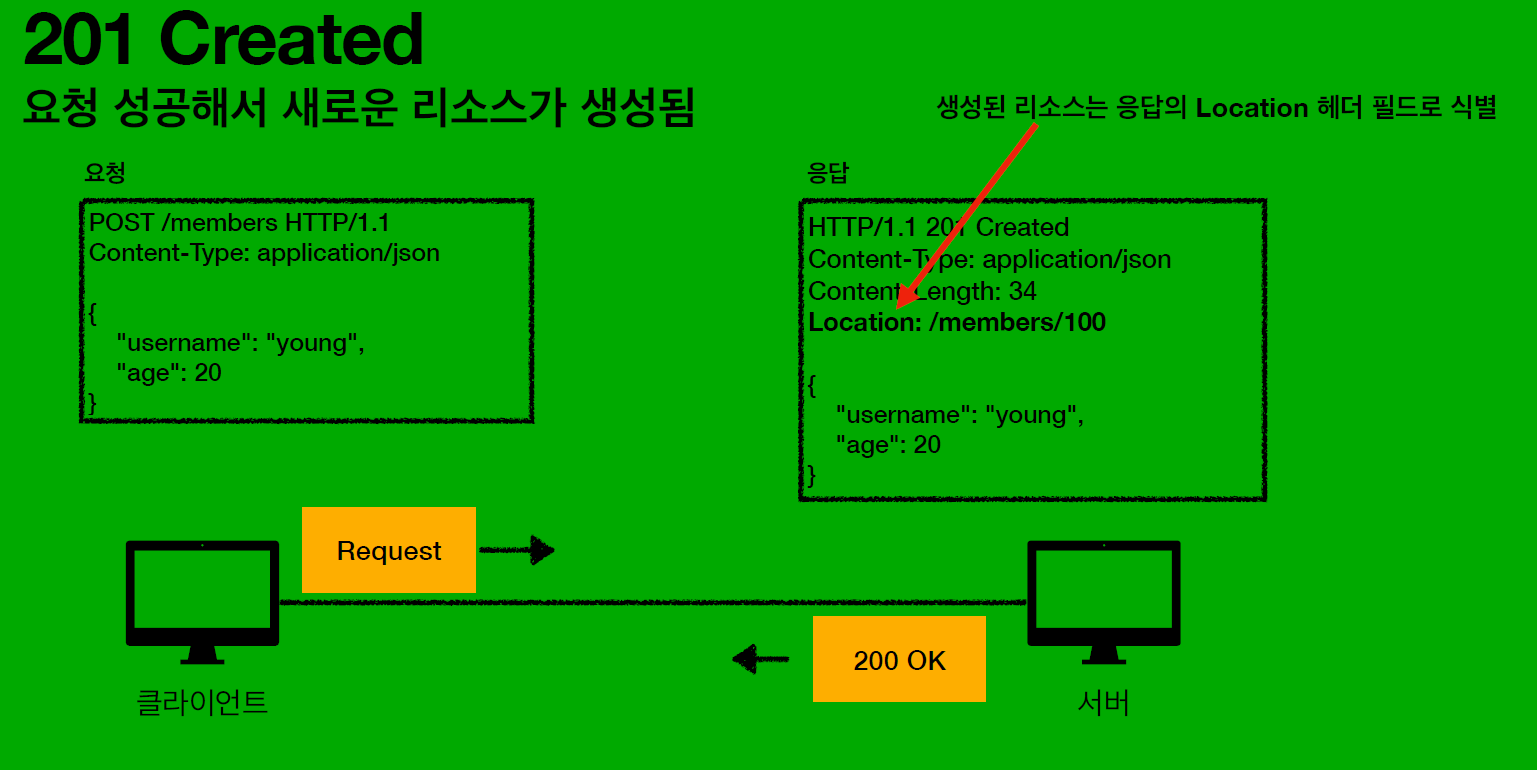 POST의 경우 서버에서 신규 리소스 장소를 지정해준다. Location Header가 존재한다.